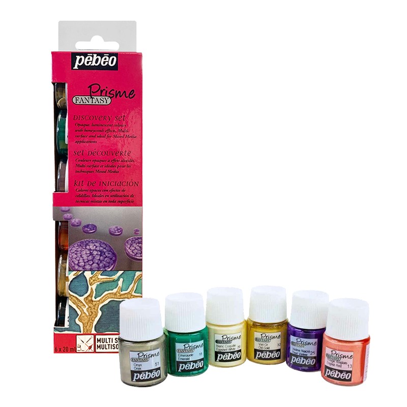 Komplet farb do różnych powierzchni Fantasy Prisme marki Pebeo. 6 kryjących kolorów w słoiczkach o pojemności 20ml.