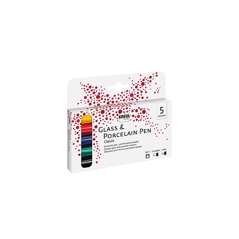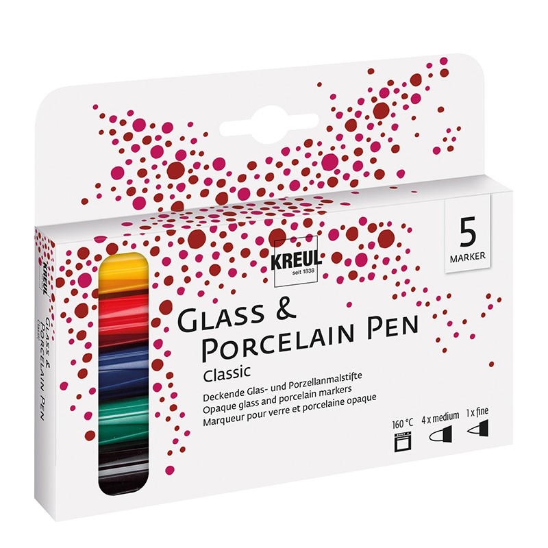 Classic Glass & Porcelain Pen Kreul – 5 kryjących pisaków z wodną farbą do szkła i ceramiki.