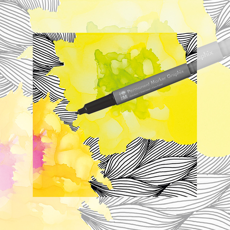 Tusze alkoholowe Marabu, zestaw 3 kolorów neonowych, 1x permanentny marker w kolorze czarnym, 5 arkuszy papieru w formacie A6 + broszura. Więcej szczegółów