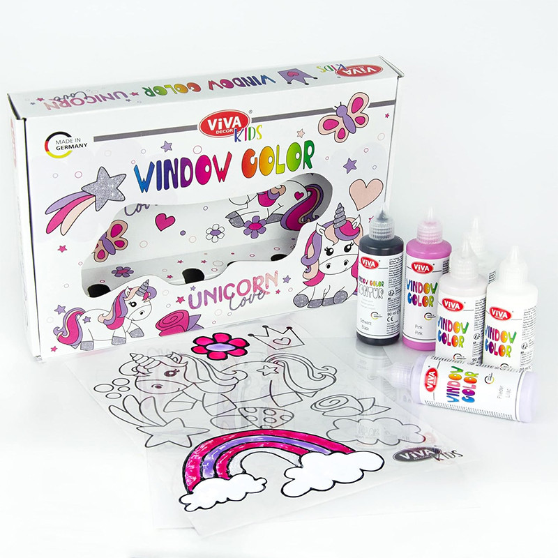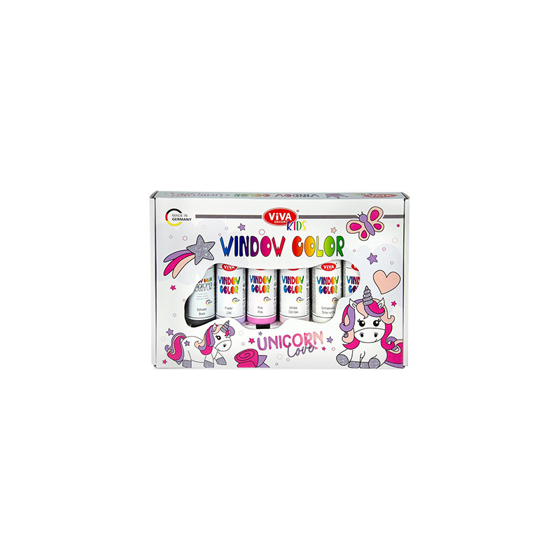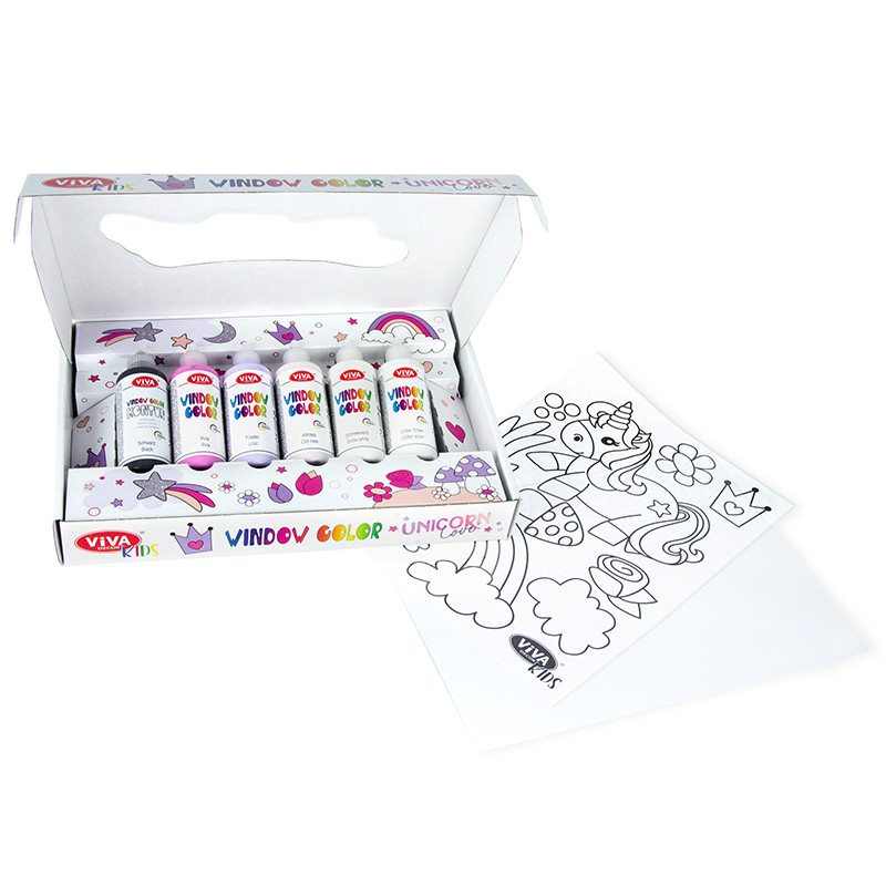Window Color Unicorn Love – kreatywny zestaw farb do szkła marki Viva Decor 6 x 90 ml.