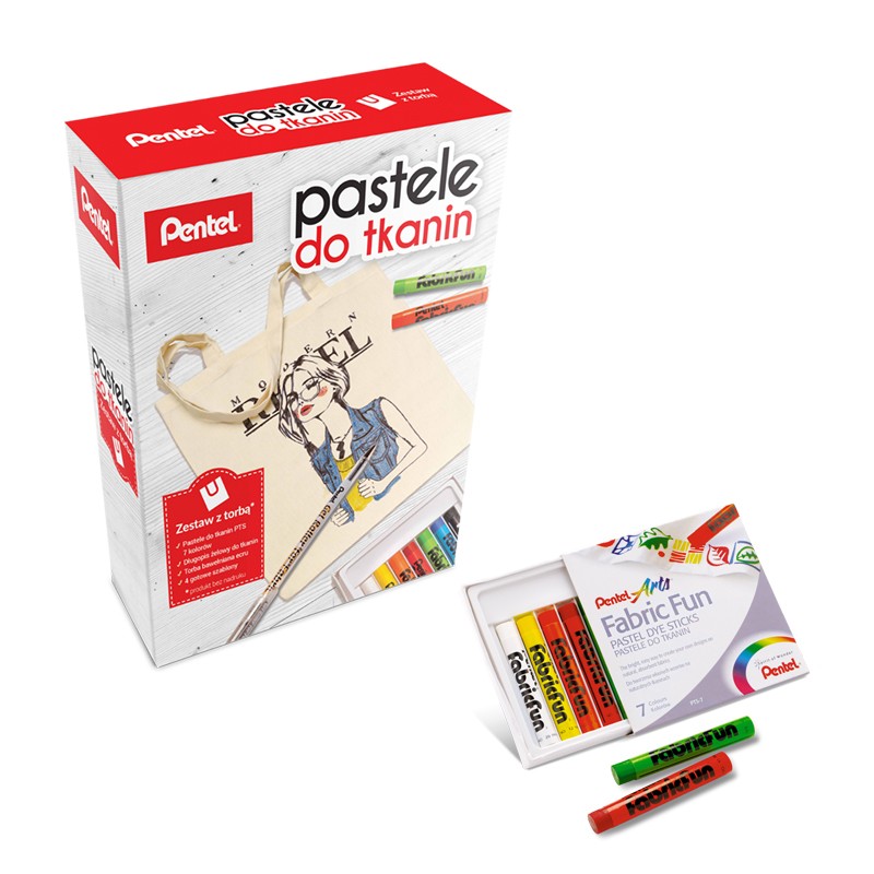 Jeśli nuda zawitała do Twojej szafy znamy na to sposób! Zestaw do kreowania ubrań i akcesoriów firmy Pentel z pewnością jest doskonałym narzędziem do twórczego przetwarzania codziennej garderoby. Wystarczy odrobina kreatywności i fantazji a dotychczasowe stylizacje zmienią swoje oblicze. Pastele bardzo przyjemnie nakłada się na naturalne materiały - ich wyraziste kolory świetnie kontrastują z czernią dołączonego długopisu żelowego którym stworzymy kontury i detale.