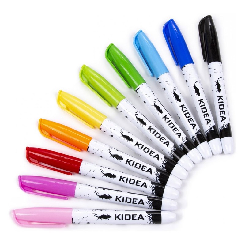 Komplet pisaków do malowania tkanin marki Kidea. 10 żywych kolorów - pisaki przeznaczone do zdobienia ubrań i obuwia wykonanych z naturalnych materiałów. Więcej szczegółów
