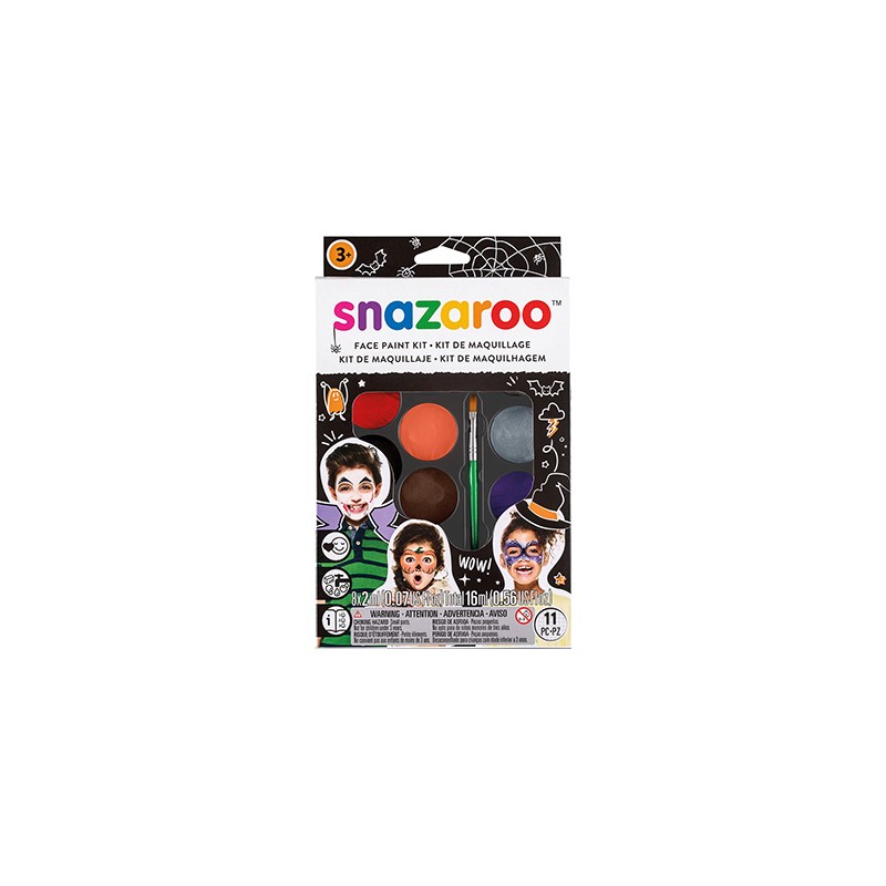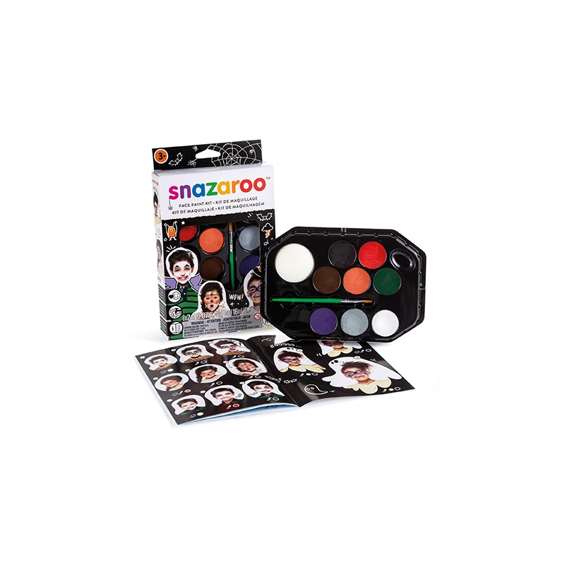 Snazaroo Face Paint Kit to gwarancja piorunującego wrażenia na każdym balu karnawałowym i harcach z okazji święta Halloween! 8 intensywnych kolorów, które doskonale pokrywają skórę, daje mnóstwo możliwości w kreowaniu charakteryzacji. Ograniczeniem jest tylko wyobraźnia! Jednak żeby ułatwić początki, do zestawu dołączono obrazkową instrukcję, która przedstawia 20 różnych sposobów na całkowitą przemianę (nie tylko w klimacie duchów, pająków i przerażających dyń!).