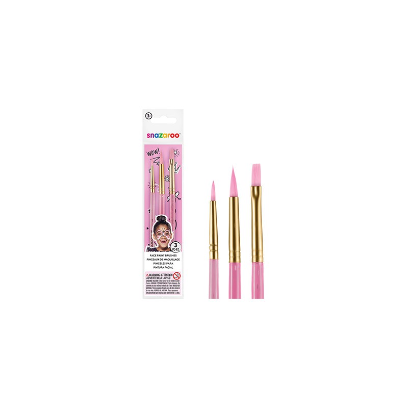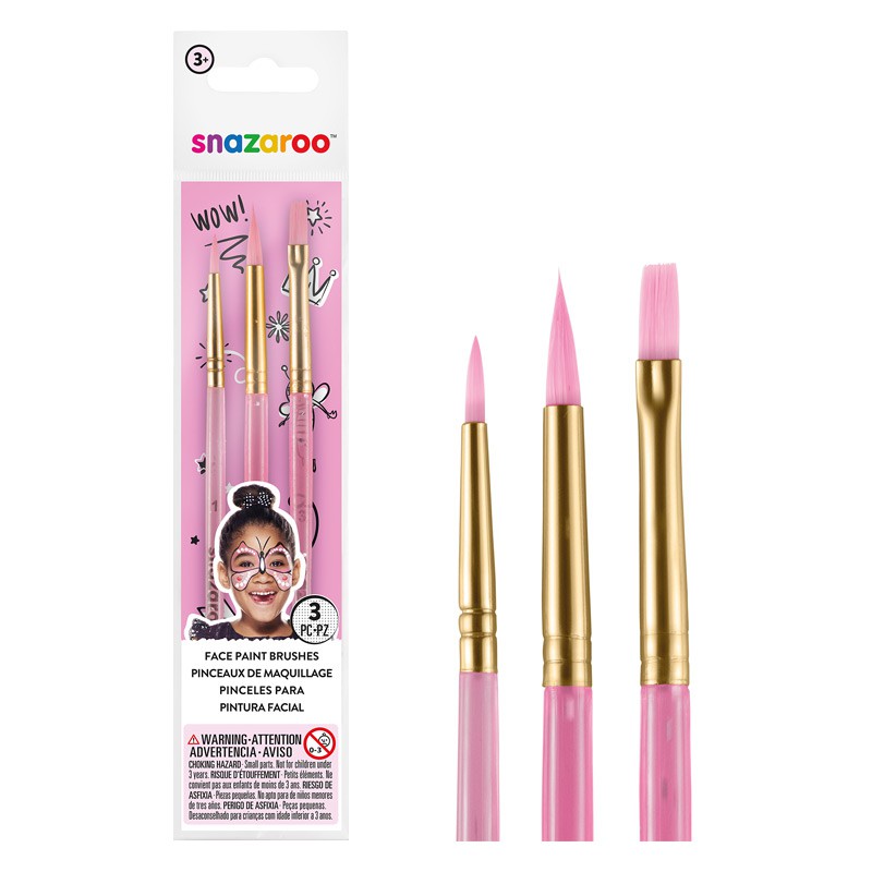 Pędzle syntetyczne do malowania twarzy marki Snazaroo. Zestaw 3 pędzli o krótkich trzonach dedykowany farbom do twarzy Snazaroo. Krótkie, lekkie, plastikowe trzonki idealnie sprawdzają się przy nakładaniu farby.