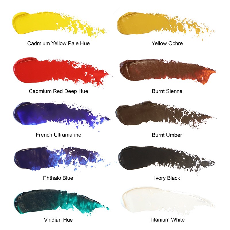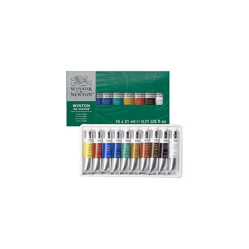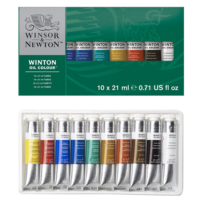 Kolory wchodzące w skład zestawu to: kadm żółty, kadm czerwony, ultramaryna, błękit ftalowy, zieleń jasna, viridian, ochra żółta, siena palona, czerń słoniowa, biel tytanowa. Kolory znakomicie łączą się między sobą, co umożliwia uzyskanie szerokiego spektrum barw i odcieni. Seria Winton zadowoli z pewnością profesjonalistów i początkujących miłośników malarstwa olejnego.