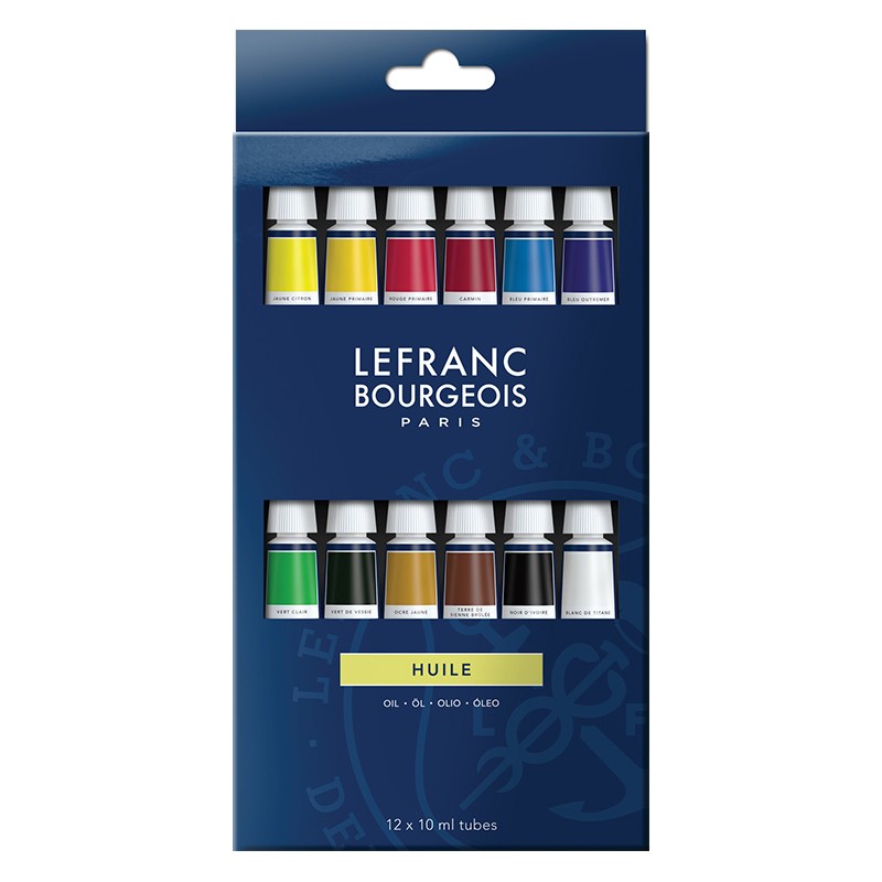 Zestaw artystycznych farb olejnych Fine Oil Lefranc & Bourgeois. 12 kolorów w tubach o pojemności 10 ml.