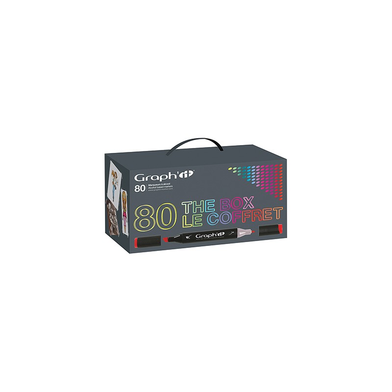 Prezentowany zestaw to 80 artystycznych markerów alkoholowych, produkcji francuskiej firmy OZ International. Komplet obejmuje większość barw z palety kolorów, zarówno te intensywne, jak i pastelowe. Pisaki zapakowane są w tekturowe pudełko które wyposażone jest w akrylowy display. Zestaw zaopatrzony jest w blender, dzięki któremu uzyskamy nieograniczone możliwości kreowania nowych odcieni. Każdy pisak wyposażony został w dwie końcówki - grubą, o szerokości 1,7mm, przeznaczoną do wypełniania dużych powierzchni rysunku, a także cienką, o szerokości 0.8mm, służącą do kreślenia konturów oraz wykonywania detali. Tusz markerów na bazie alkoholu zapewnia idealne krycie, wysoką odporność na ścieranie, zmywanie i chroni go przed wysychaniem.