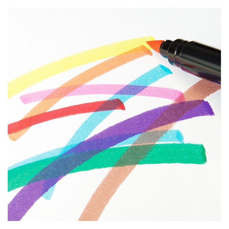 Komplet pisaków do kolorowania, malowania, brushletteringu oraz scrapbookingu. Elastyczna filcowa końcówka pozwala tworzyć linie o szerokości od 0,5 do 4 mm. Jasne, transparentne i żywe kolory można ze sobą mieszać tworząc nowe odcienie. Każdy pisak zaopatrzony jest w skuwkę zabezpieczającą przed wysychaniem. Tekturowe opakowania zawiera 24 kolory.