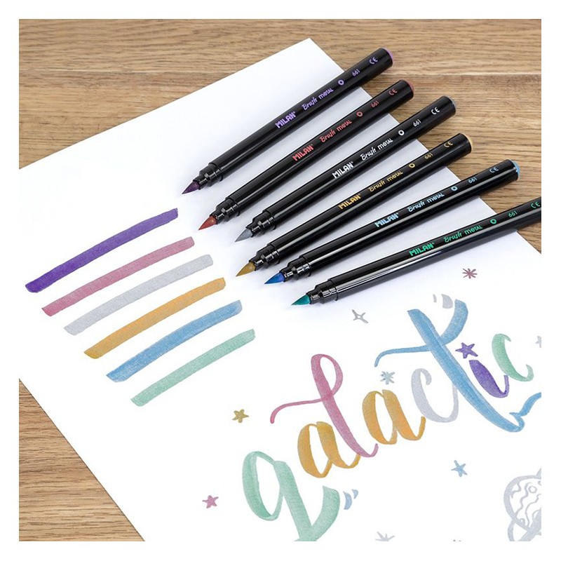 Pisaki pędzelkowe Milan – zestaw 6 pisaków w metalicznej gamie kolorystycznej.
