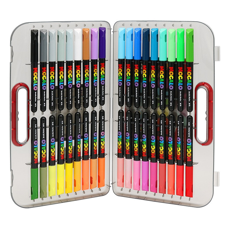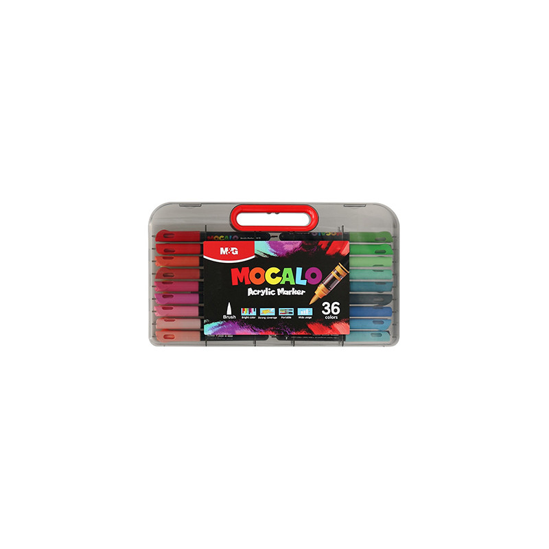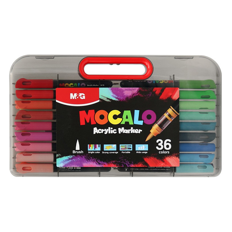 Pędzelkowe markery akrylowe MOCALO M&G – 36 intensywnych kolorów, plastikowa walizka.