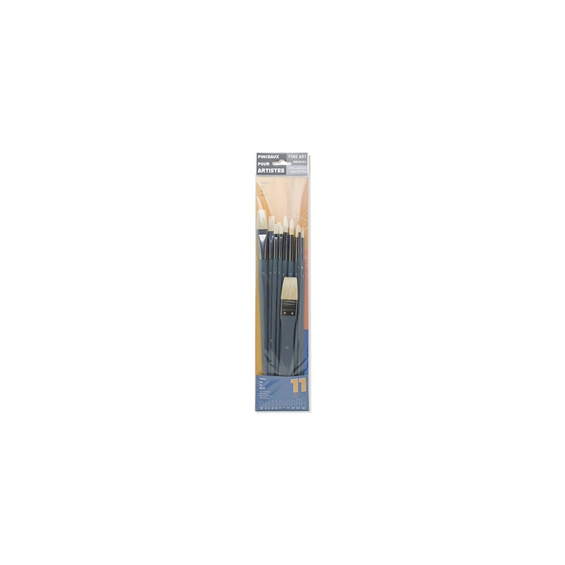 Na zestaw składa się 11 pędzli z długą, politurowaną rączką: