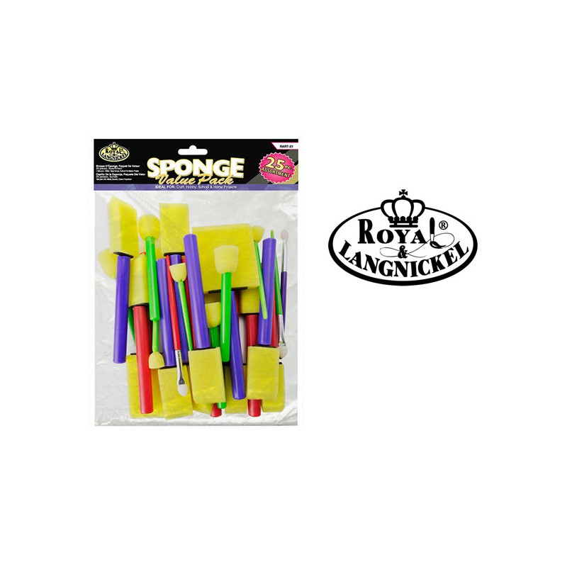 Zestaw 25 pędzli gąbkowych, amerykańskiej firmy Royal & Langnickel. Pędzle z gąbki syntetycznej cechują się dobrym wchłanianiem farby, która nie kapie, Więcej szczegółów