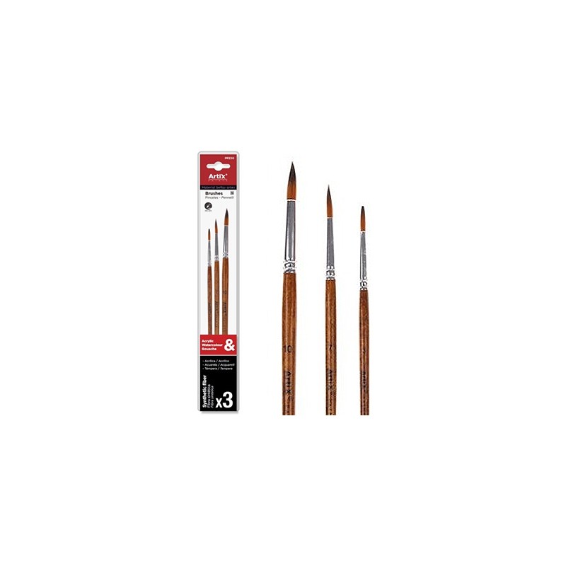 Komplet pędzli syntetycznych Artix do akryli, akwareli i temper. 3 sztuki.