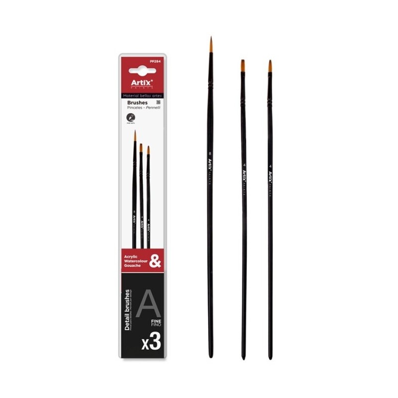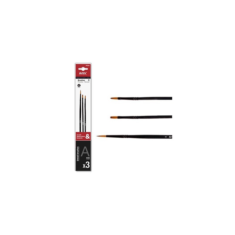 Zestaw pędzli syntetycznych Artix do farb akrylowych, akwarelowych i temper. 3 różne kształty i rozmiary dla wygodnej pracy i różnorodnych efektów. Więcej szczegółów