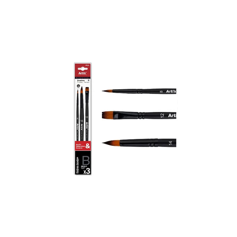 Komplet pędzli syntetycznych Artix do akryli, akwareli i temper. 3 sztuki.