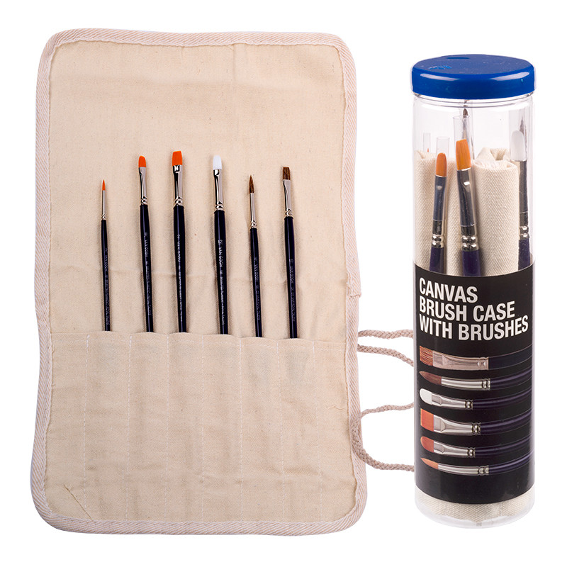 Zestaw 6 pędzli z krótką rączką z serii Van Gogh firmy Talens. Pędzle naturalne (z ucha bawoła) i syntetyczne w plastikowej tubie z płóciennym etui. Więcej szczegółów