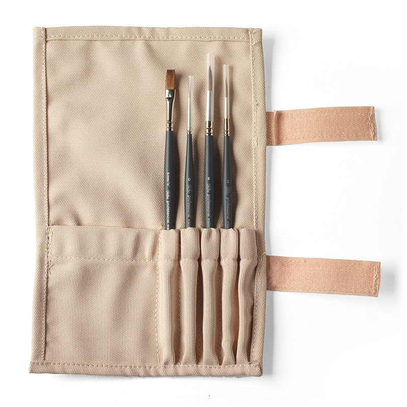 Professional Watercolour Synthetic Sable Brushes – pędzle do farb akwarelowych, syntetyczny sobol. 4 sztuki + płócienne etui.