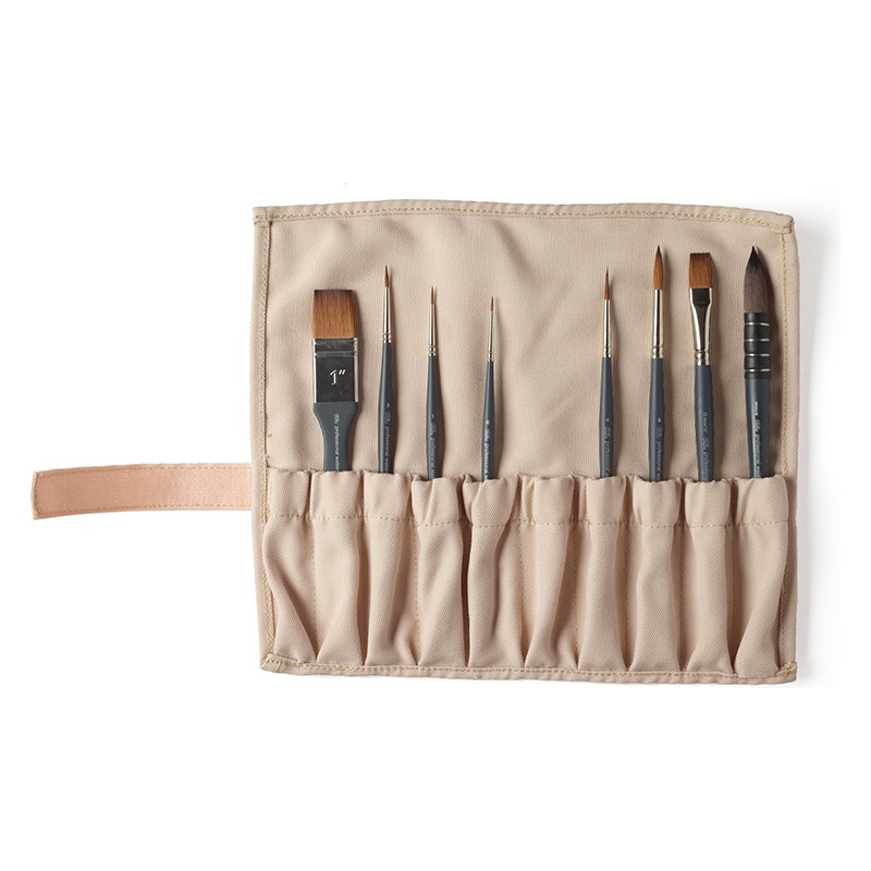 Professional Watercolour Synthetic Sable Brushes – pędzle do farb akwarelowych, syntetyczny sobol. 8 sztuk + płócienne etui.