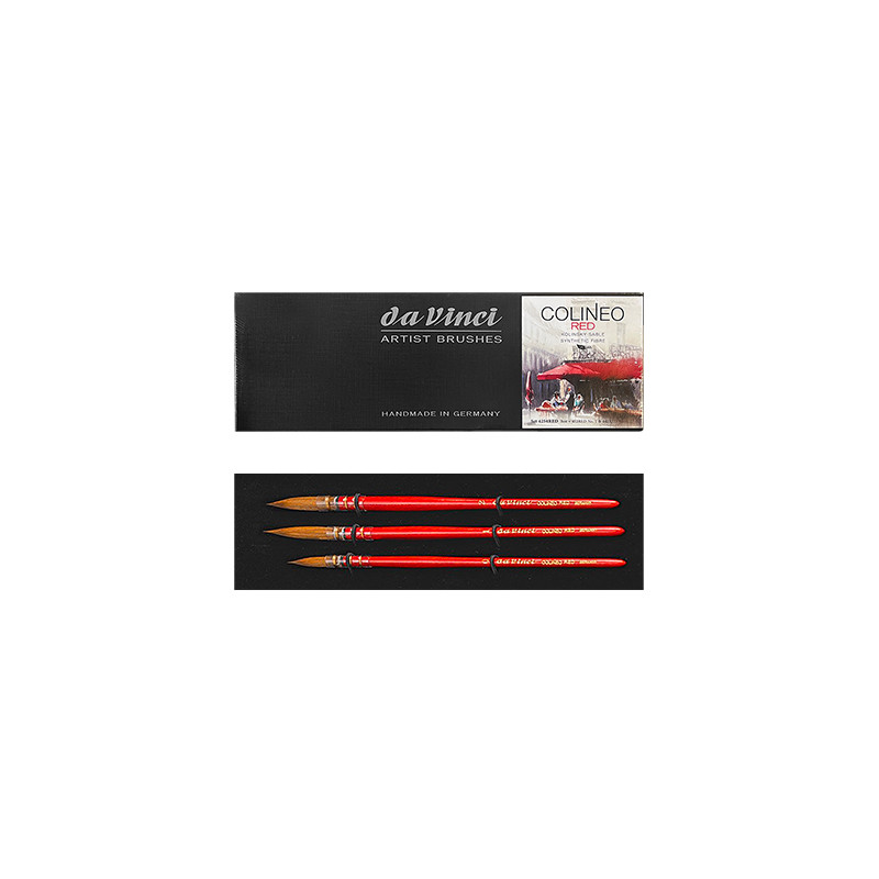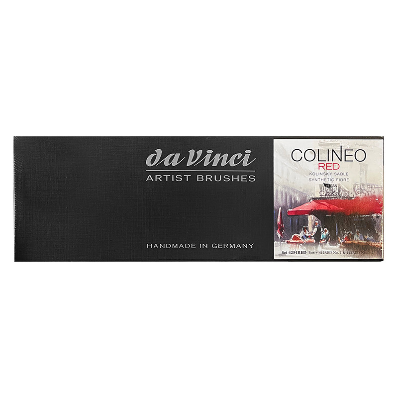 Pędzle serii Colineo Red - zestaw prezentowy marki da Vinci. Syntetyczna imitacja sobola Kolinsky. Krótkie lakierowane trzonki w kolorze czerwonym. Więcej szczegółów