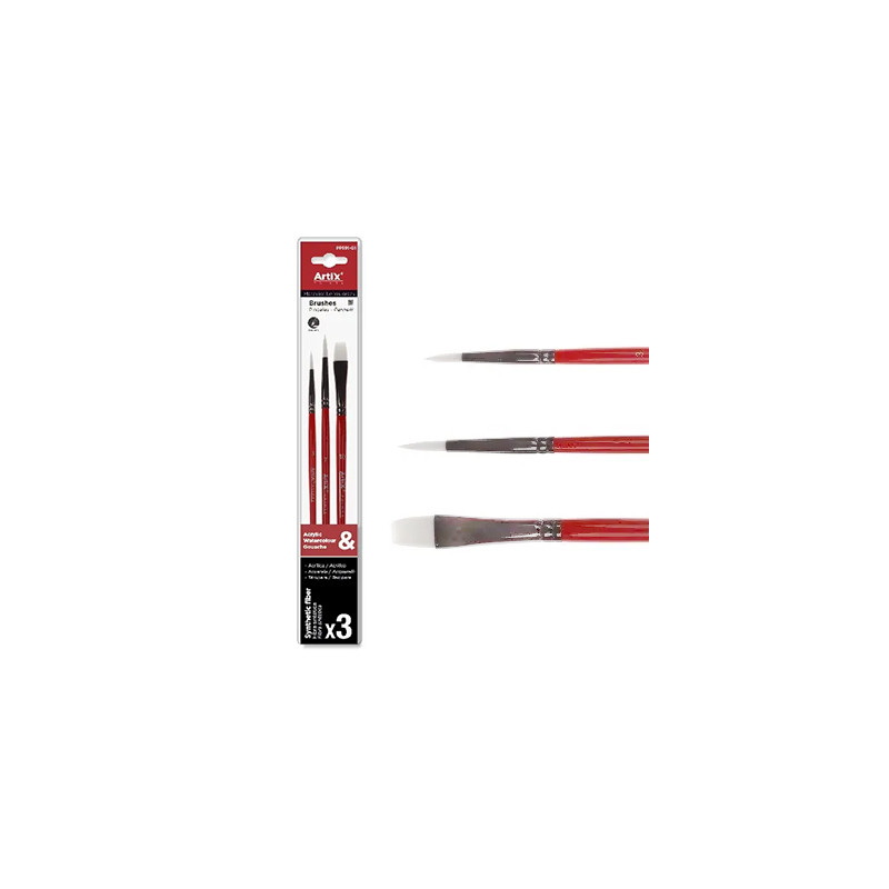 Komplet pędzli syntetycznych Artix do akryli, akwareli i temper. 3 sztuki.
