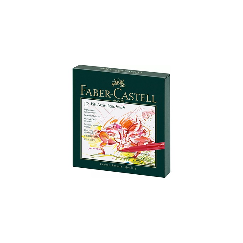 Pitt artist pen Faber Castell. Zestaw 12 pisaków w eleganckim etui. Idealnie zaspokaja potrzeby profesjonalnych twórców komiksu, mangi, projektantów, ilustratorów, kraślarzy, oferując szeroką gamę kolorystyczną. Pisaki z końcówką pędzelkową (brush pen).