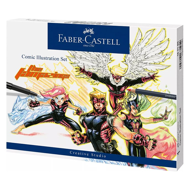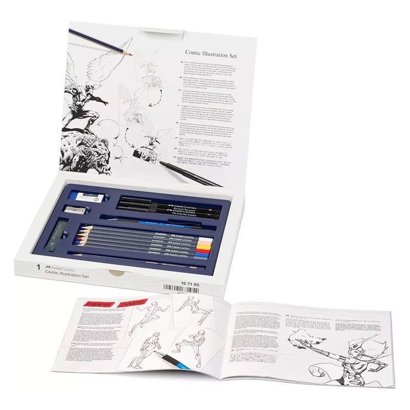Comic Illustration Set - zestaw rysunkowy marki Faber-Faber Castell. 15-elementowy komplet pisaków, kredek i akcesoriów. Więcej szczegółów