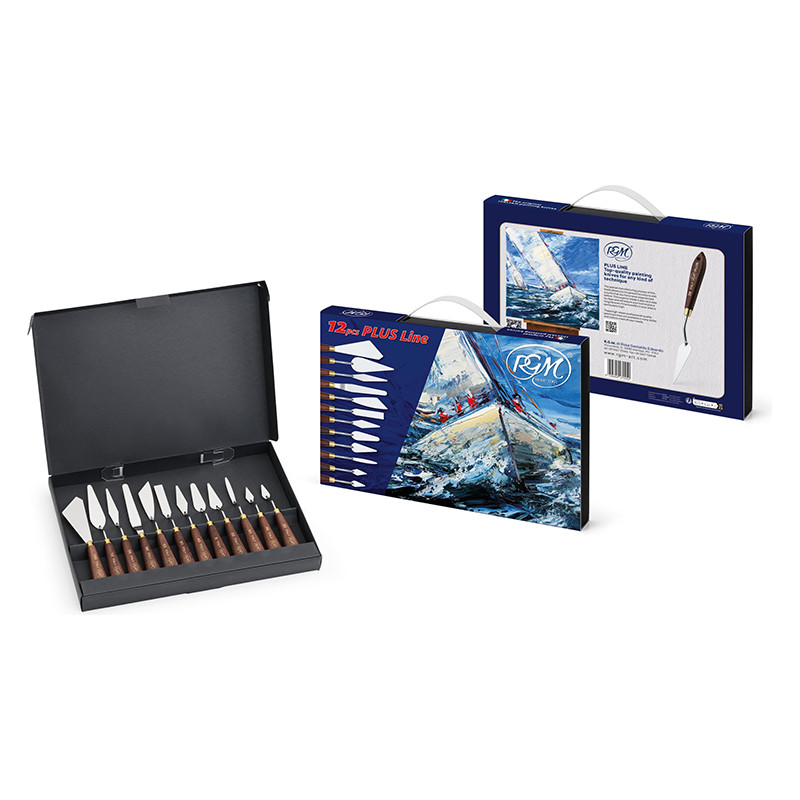 Szpachle malarskie Plus-Line RGM w zestawie 12 sztuk.