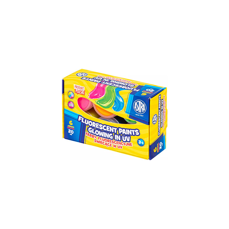 Zestaw farb fluorescencyjnych Astra, składający się z 6 kolorów o pojemności 20 ml. Więcej szczegółów