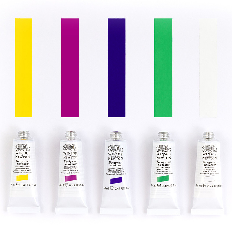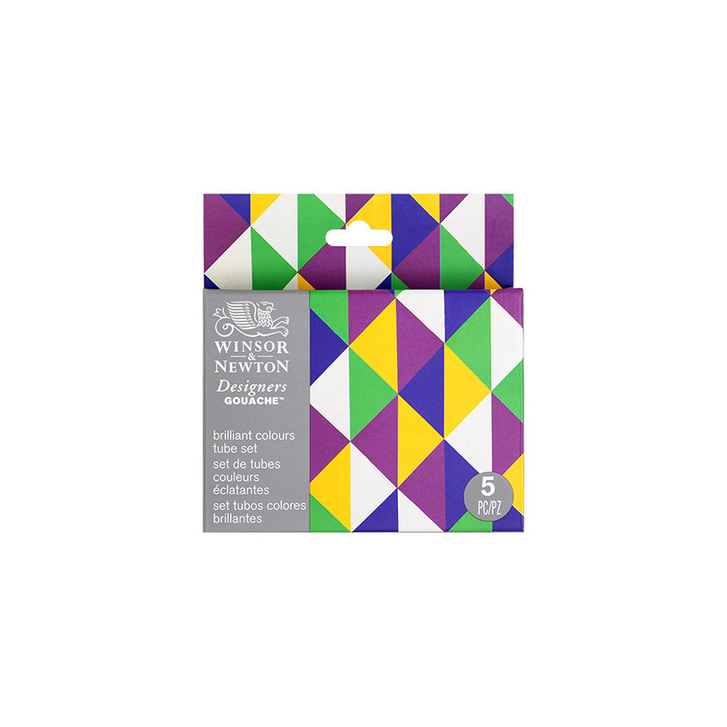 Komplet gwaszy Designers Gouache Winsor & Newton. 5 tubek o pojemności 14 ml. Intensywna gama mocnych kolorów.